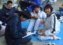 走る前までは、抜かれてチームに迷惑かけるんじゃないかと心配でした。 走っている途中、風がけっこう強くて、雪も降っていてしんどかったけど、 たくさんの人の応援のおかげでなんとか走りきることができ、この駅伝に出 場できてよかったなと思いました。 |