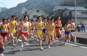 | 10秒差で見事優勝。 2位宇和体協に、10秒差ではあるが、2002年の最初の駅伝を制しました。1区内田、5区磯金、6区山本の3選手が区間賞を取りました。 クラブの部 1位 松山陸協 2時間57分25秒 2位 宇和体協 2時間57分35秒 3位 新居浜楽走会 3時間02分41秒 4位 石井体協A 3時間03分07秒 5位 御荘体協 3時間04分21秒 6位 宇和島西風 3時間04分41秒 一般は愛媛銀行、高校は松山商業がそれぞれ優勝しました。 出場は一般6チーム、高校8チーム、クラブ67チームでした。 |
