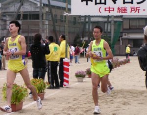 ![]() Aチーム 2区 遠藤 から 3区 矢野へ |