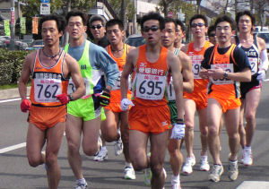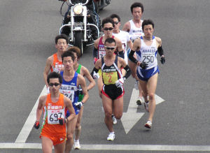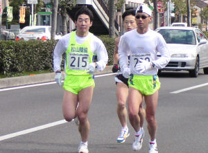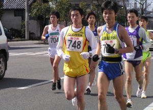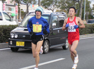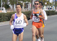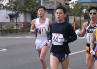 ![]() ○q付近 小坂交差点を折り返して・・・ 928 2位 佐々木 健一 2:26'48" (國學院大) 405 3位 勝木 彰 2:27'20" (三協産業陸上部) 929 5位 望月 義治 2:29'23" (國學院大) |