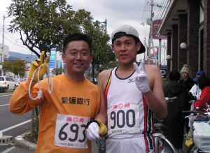 ![]() 7.5q付近 第2集団 697 6位 魚崎 裕司2:31'50"(愛媛銀行) |