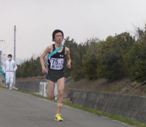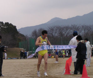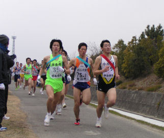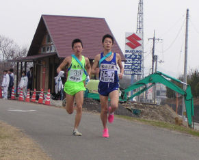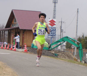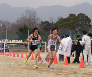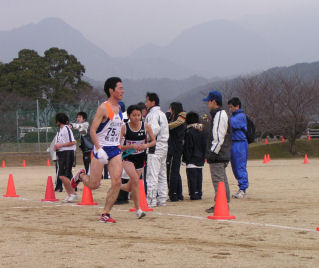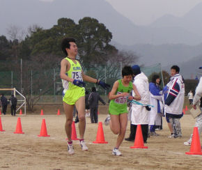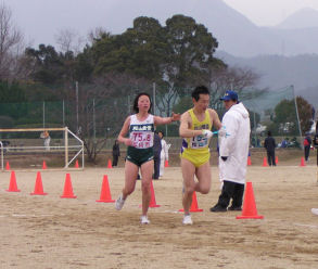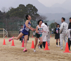 | 4区で西条市(矢野選手)をとらえ、3位に駒を進めるが、 5区でまたも西条市(小木曽選手)に、ぬきかえされる。 6区で再度西条市をとらえて3位で中継。 そのまま、順位をキープし3位入賞。 |