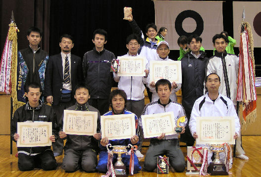 | =2部.4部の優勝旗とともに!= 連続出場 15回 清水 20回 渡部 優秀選手賞 古川 優勝の副賞は、大洲の名産品でした。 |