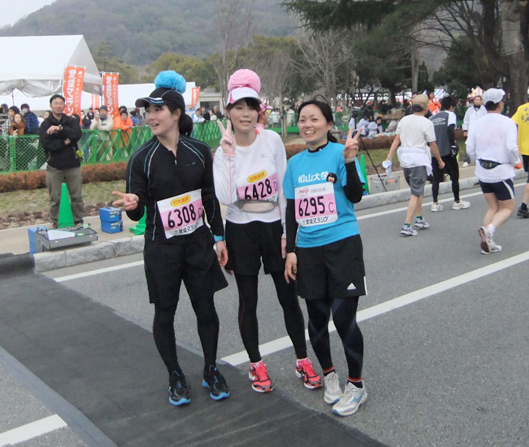 松陸OB(現西条陸協)平井選手、磯金選手、野本(西予市) 仲良く一緒にゴールした3人の女子メンバー
